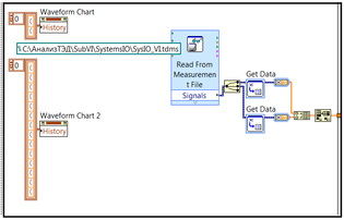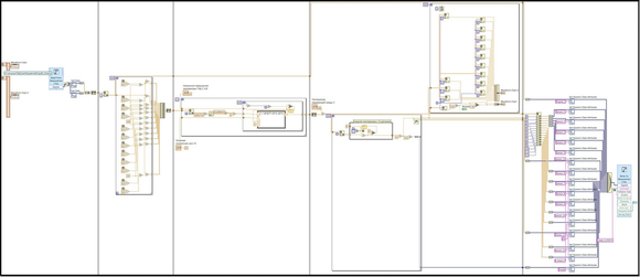 Главная программа состоит с шести блочных подпрогрмамм, которые взаимодействуют последовательно. Начальная подпрограмма приведенная на рисунке 5.2 осуществляет чтение токов для дальнейшей генерации значений температуры виртуальных датчиков.