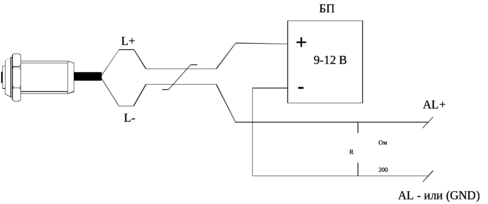 Рисунок 4.10 – Электрическая принципиальная схема подключения пирометра Кельвин ИКС по протоколу передачи данных «токовая петля»