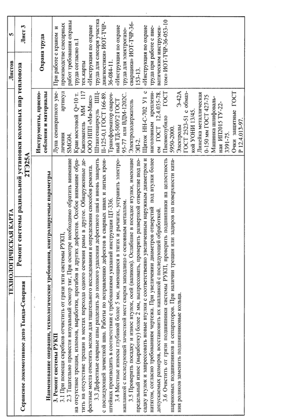 4.4 Разработка проекта технологической карты «Выполнение ремонта системы радиальной установки колесных пар тепловозов 2ТЭ25А в объеме ТР-3»