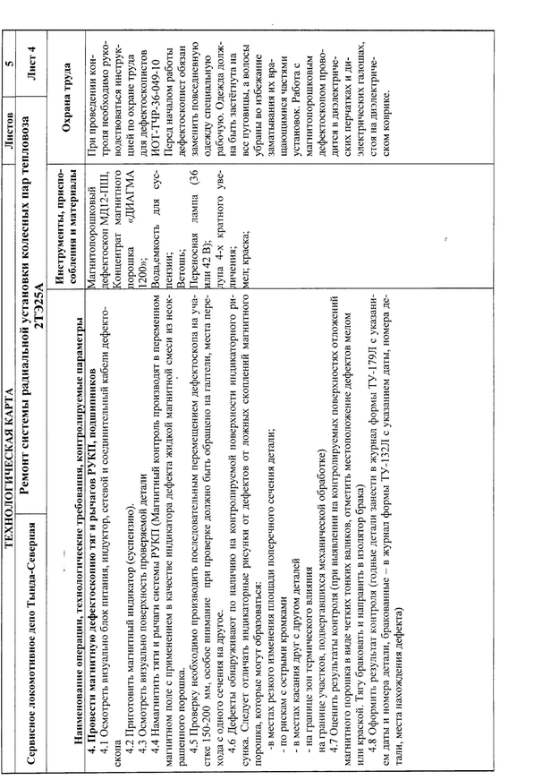 При разработке техкарты по ремонту системы радиальной установки колесных пар использовалась инструкция по магнитопорошковой дефектоскопии деталей тележки тепловоза 2ТЭ25А при ремонте в объеме ТР-3, среднего ремонта.