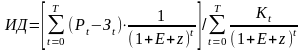 Индекс доходности (ИД) – представляет собой отношение суммы приведенных эффектов к величине капиталовложений, определяется по формуле