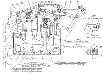 Работу крышки цилиндра и всего механизма газораспределения контролируют и обеспечивают в эксплуатации зазоры в гидротолкателях. Эти зазоры устанавливают для компенсации теплового удлинения деталей механизма газораспределения. Разница зазоров (неравномерность открытия клапанов) не должна превышать 0,2 мм. Зазоры при ТР-1, ТР-2 и ТР-3 регулируют изменением длины штанг. Одновременность открытия клапанов обеспечивают подбором колпачков клапанов или шлифовкой торцов колпачков.