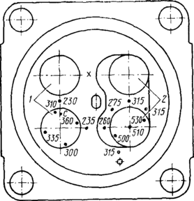 1— окна впускных клапанов; 2 — окна выпускных клапанов
