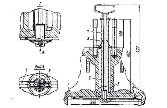 Чтобы измерить линейную величину камеры сжатия, крышку монтируют на блоке. Нормально крышка должна садиться на блок свободно, затем поворачиваться относительно оси цилиндра в пределах зазора между шпильками и отверстиями в крышке. После такой проверки крышку укрепляют четырьмя гайками. До установки крышки на блок на поршень данного цилиндра с каждой стороны его головки (ближе к внешнему диаметру) укладывают по одному свинцовому кубику высотой 8 – 10 мм. Кубики можно поместить на головку поршня и при смонтированной на блоке крышке при помощи приспособления. Его опускают в цилиндр через форсуночное отверстие в крышке, подвижные концы стержня со свинцовыми кубиками 5 разводят и выставляют вдоль оси коленчатого вала. Проворачивают коленчатый вал, пока поршень не пройдет верхнюю мертвую точку и не обожмет кубики. Чтобы извлечь кубики из цилиндра, снимают крышку или вынимают приспособление из крышки.