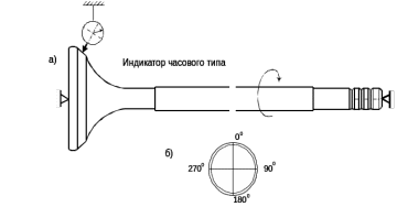 Рисунок 2.8 – а) Схема измерения штока выпускного клапана на биение;