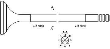 Овальность и конусность штока выпускного клапана находят путём измерения его диаметра микрометром в следующем порядке: