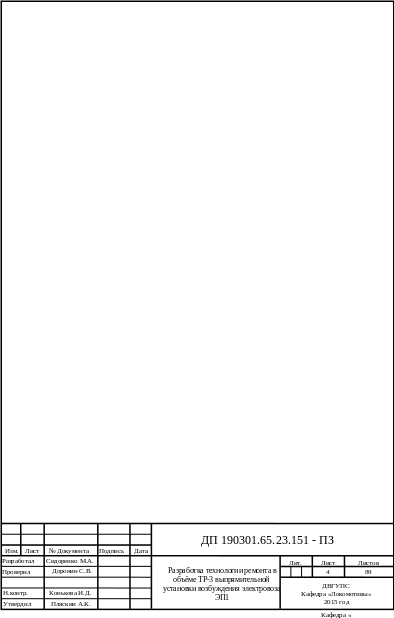 Проделанная работа позволит усовершенствовать процесс ремонта выпрямительной установки возбуждения, а так внедрить современные методы диагностики и ремонта.