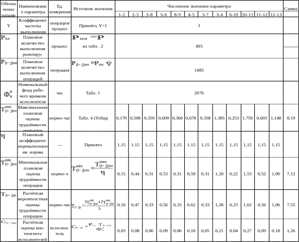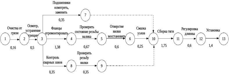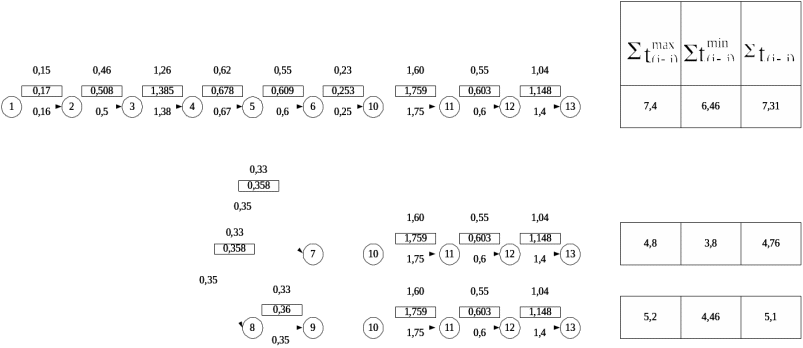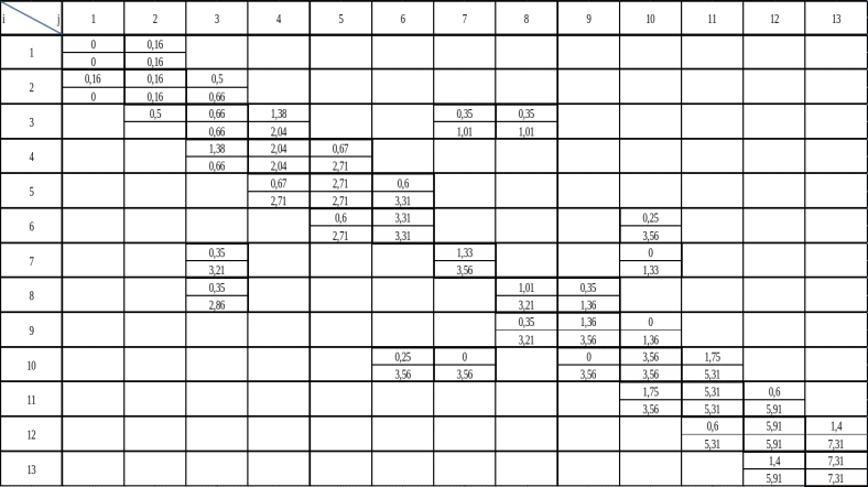 Таблица Г.1 – Расчёт сетевой модели в диагональной матрице