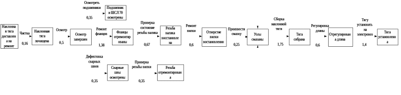 | 1.1. | очистка | Демонтировать наклонную тягу очистить от грязи | Скребок, ветошь, керосин | Мойщица | Инструкция по охране труда для мойщика-уборщика подвижного состава ИОТ-ТЧР-32-045-10 Инструкция о охране труда для слесаря по ремонту подвижного состава ИОТ-ТЧР-32-067-11; Инструкция по охране труда для дефектоскописта ИОТ-ТЧР-32-049-10 | ||||||||||