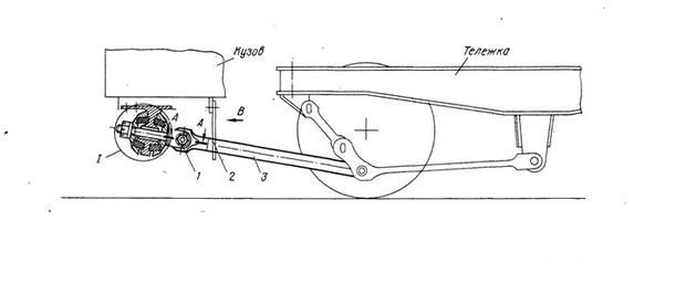 Шаровые подшипники в тяге 1 обеспечивают компенсацию технологических погрешностей при монтаже тягового устройства тележек.