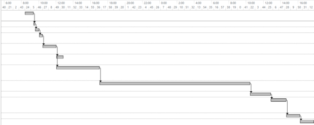На рисунке 3.7 приведен сетевой график технического обслуживания системы охлаждения тепловоза ТГ16М в рамках ТР-2, построенный на основе ленточного календарного графика технического обслуживания, приведенного на рисунке 3.6.