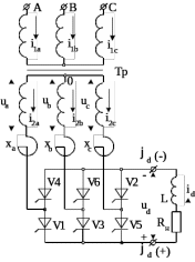 Рассмотрим работу трёхфазного управляемого выпрямителя (рисунок 1.9) при активно-индуктивной нагрузке с