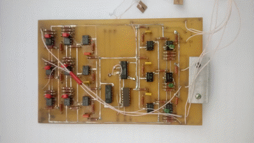 - на транзисторах VT1–VT6 реализованы усилители постоянного тока для согласования высокого выходного сопротивления операционных усилителей с низким входным сопротивлением логических элементов НЕ и И-НЕ.