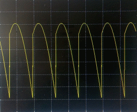 Осциллограмма выпрямленного напряжения управляемого выпрямителя, представленная на рисунке 4.12, показывает сходство с результатами моделирования схемы выпрямителя в пакетах Multisim и LabView (см. рисунок 3.4), что подтверждает адекватность спроектированной математической модели.