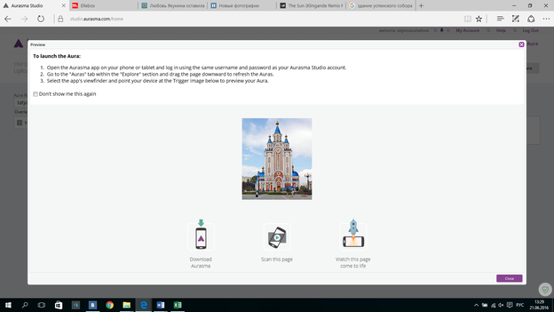 Наложение на картинку «ауры» имеет сложный алгоритм – однако даже тут пытливому пользователю упрощена работа: уже создано специальное приложение «Aurasma», позволяющая очень легко создавать «ауры» вокруг обычных предметов. Именно благодаря этому приложению, на примере одного объекта из нашего маршрута, я покажу, как будет разрабатываться и создаваться дополненная реальность на объекте.