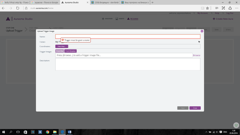 Мы регистрируемся на сайте AurasmaStudio. Далее нажимаем в правом верхнем углу с надписью Create New Aura