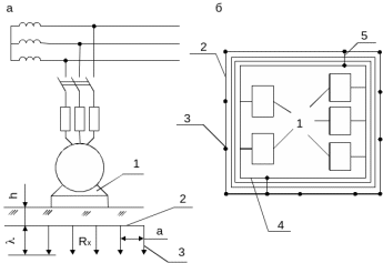 Рисунок 4.1 - Схема заземления: а – электроустановки; б – группы электроустановок,