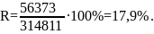 Рентабельность проекта R вычислим как частное от прибыли к расходам, выраженное в процентах