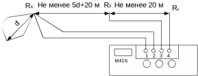 Измерение производится по схеме, приведенной на рисунке 4.2. В результаты измерения входит сопротивление провода, соединяющего зажим 1 и Rx.