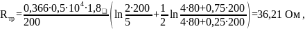 Сопротивление полосы, уложенной на глубину, определяется по формуле