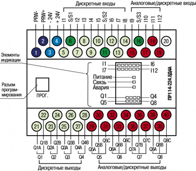 Рисунок 4.1 – Программируемое реле ПР114. Обозначение разъемов