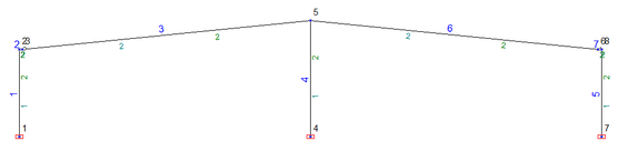 Расчетная схема определена как система с признаком 2. Это означает, что рассматривается плоская рамная система расположена в плоскости XOZ и основные неизвестные представлены линейными перемещениями узловых точек вдоль осей X и Z, а также их поворотами вокруг оси Y.
