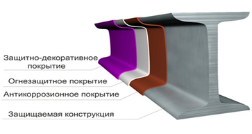 Огнезащита металлоконструкций − это в первую очередь антикоррозионная защита металла, т. е. применение антикоррозионных грунтовок под огнезащитным покрытием, и, в зависимости от условий эксплуатации, использование защитных покрытий, наносимых на огнезащитные составы. В результате получается достаточно сложная комплексная система покрытий, которая должна обеспечить: