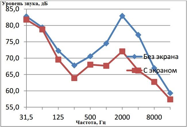 Такие экраны снижают шум на 14-15 дБА и обеспечивают снижение шума в близрасположенной жилой застройке до требований норм.