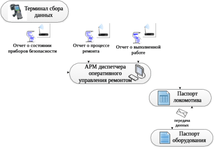 Схема передачи данных с ТСД в паспорт локомотива, представлена на рисунке 3.15.