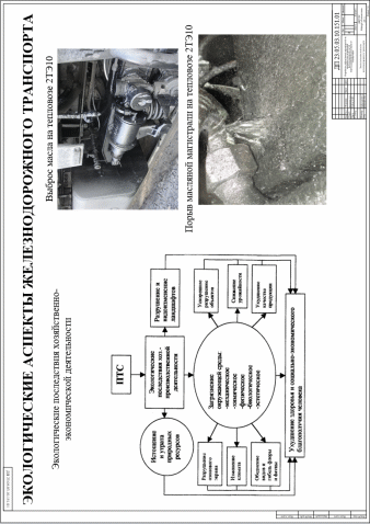 В данном дипломном проекте рассмотрен вопрос влияния отказов техническим средств локомотивов и влияние этих отказов на окружающую среду, в частности – загрязнение тракционных путей депо.