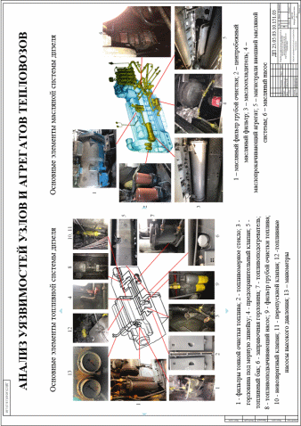 Для решения поставленной задачи проведен анализ отказов узлов и агрегатов локомотивов, по результатам которого выделены наиболее склонные к утечкам горюче-смазочных материалов элементы, вызывающие загрязнение тракционных путей депо и полосы отвода. Таковыми стали элементы масляной и топливной систем тепловозов и элементы колесно-моторного блока локомотивов в целом.