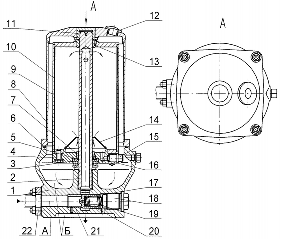 Рисунок 4.7 – Насос масляный (разрез в горизонтальной плоскости):