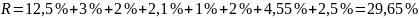 Прочие собственные риски. Данный фактор риска оценивается в пределах 0 – 5 % и учитывает вероятность влияния на получение прогнозируемых доходов других специфических рисков, присущих оцениваемой компании. Принимая во внимание специфику ведения бизнеса в России, необходимо предусмотреть величину данного фактора на уровне середины диапазона. Принимаем данный показатель 2,5 % [24].