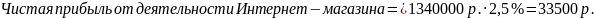 Из вышесказанного следует вывод, что данное предприятие увеличит число покупателей на 2,5%. Так как цена в реальном и Интернет-магазине одинакова, можно рассчитать чистую прибыль от деятельности Интернет-магазина: