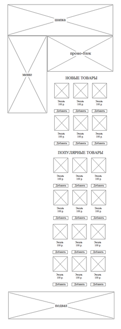Блоки с популярными и новыми товарами размещены на главной странице Интернет-магазина. В блоке новых тваров может быть размещено до 6 товаров, в блоке популярных − 12.