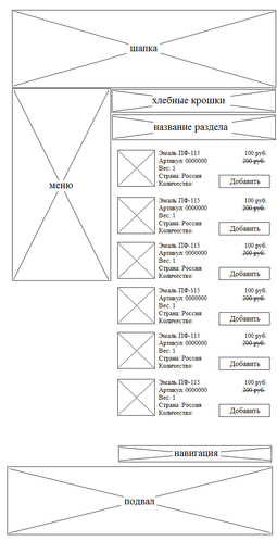 Информация на странице каталога также содержит меню каталога, информацию о товарах в виде списка товаров определенной категории (рисунок 3.7).