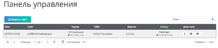 В результате всех вышеперечисленных настроек получается пустой сайт, размещенный и доступный в Интернете, управляемый CMS MODX Revolution и имеющий адреса s1595.h3.modhost.pro, www.stroymag-store.ru, stroymag-store.ru. При переходе по любому из данных адресов произойдет перенаправление на stroymag-store.ru.