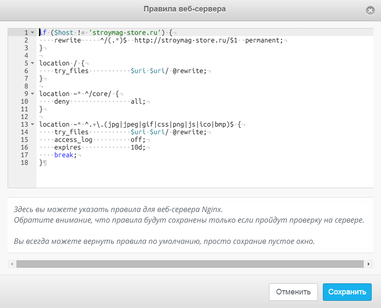 Далее нужно настроить веб-север для перенаправления со всех доменов, включая служебный, на один определенный. Правила веб-сервера представлены на рисунке 3.18.