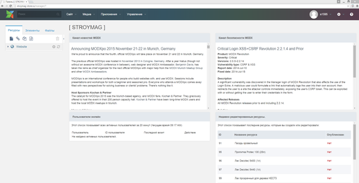 Как при работе с любой CMS создание сайта в MODX происходит через панель администратора (рисунок 3.20). На панели администратора есть все необходимые для работы инструменты.