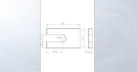 Деталь «Ушко», изображенная на рисунке 2.6, представляет собой прямоугольный параллелепипед с габаритными размерами 52×30×6 мм. На фронтальной поверхности детали, от узкой грани к центру прямоугольника имеется сквозной вырез длиной 30 мм шириной 11 мм. Торцевая сторона выреза имеет скругление радиусом 5,5 мм. Вырез расположен симметрично оси симметрии детали. Масса детали 0,061 кг. Материал – сталь 3сп1, изготовленная в соответствии требований ГОСТ 535-88.