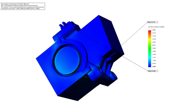 При анализе полученных результатов в программе SolidWorks Simulation исследуются максимальные напряжения в узлах конечно-элементной сетки по критерию Мизеса. Данный критерий основывается на теории Mises-Hencky, также известной как теория энергии формоизменения. Теория утверждает, что пластичный материал начинает повреждаться в местах, где напряжение по Мизесу становится равным предельному напряжению. Предел текучести используется в качестве предельного напряжения.