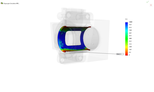 Рисунок 4.11 – Распределение запаса прочности баббитового слоя вкладыша с окном