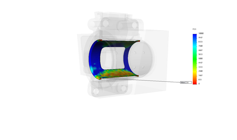 - наименьший коэффициент запаса прочности имеет деталь, имитирующая баббитовый слой вкладыша с окном. Коэффициент запаса прочности равен двум, при этом баббитовый слой данного вкладыша испытывает наибольшее напряжение в сборке.