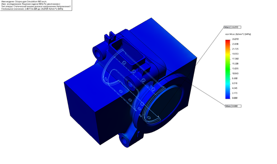 В процессе детального анализа сборки 3D-модели МОП, полученные значения максимальных узловых напряжений
