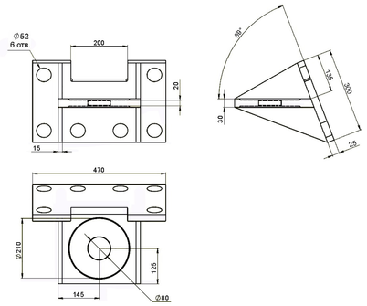| Кронштейн | Сталь 45 | 262 | 580 | 2,21 |