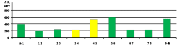 На рисунке 3.22 изображена диаграмма потерь напряжения по участкам линии ВЛ ДПР при изменении схемы питания.
