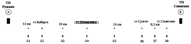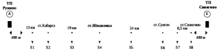 Рисунок 3.21 - Схема участка Ружино - Свиягино линии ДПР при изменении схемы питания
