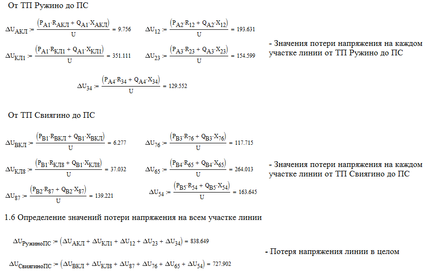 На рисунке 4.26 представлен пример вывода результатов расчета значений потери напряжения на каждом участке линии ВЛ СЦБ при питании от ТП Ружино и ТП Свиягино, а так же максимальные потери напряжения на всем участке линии ВЛ СЦБ.