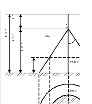 Принимая расчетную высоту молниеотвода равной 45,50 метров в соответствии с (4.1) - (4.3), получаем