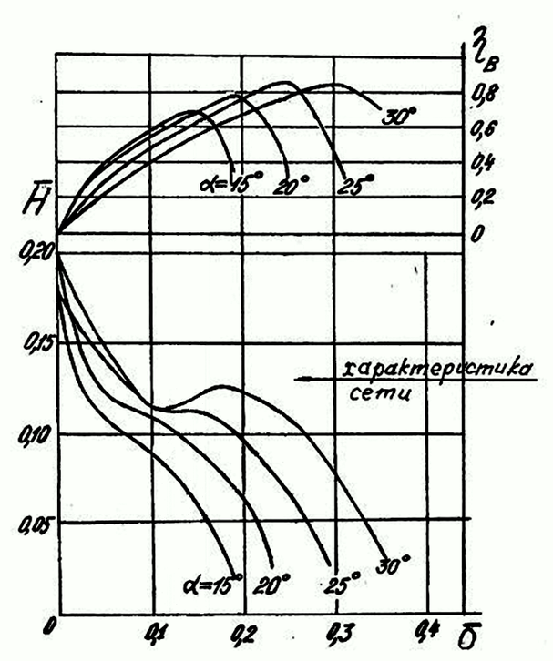 По графической зависимости видно, что КПД вентилятора максимален при установке лопастей под углом 250.